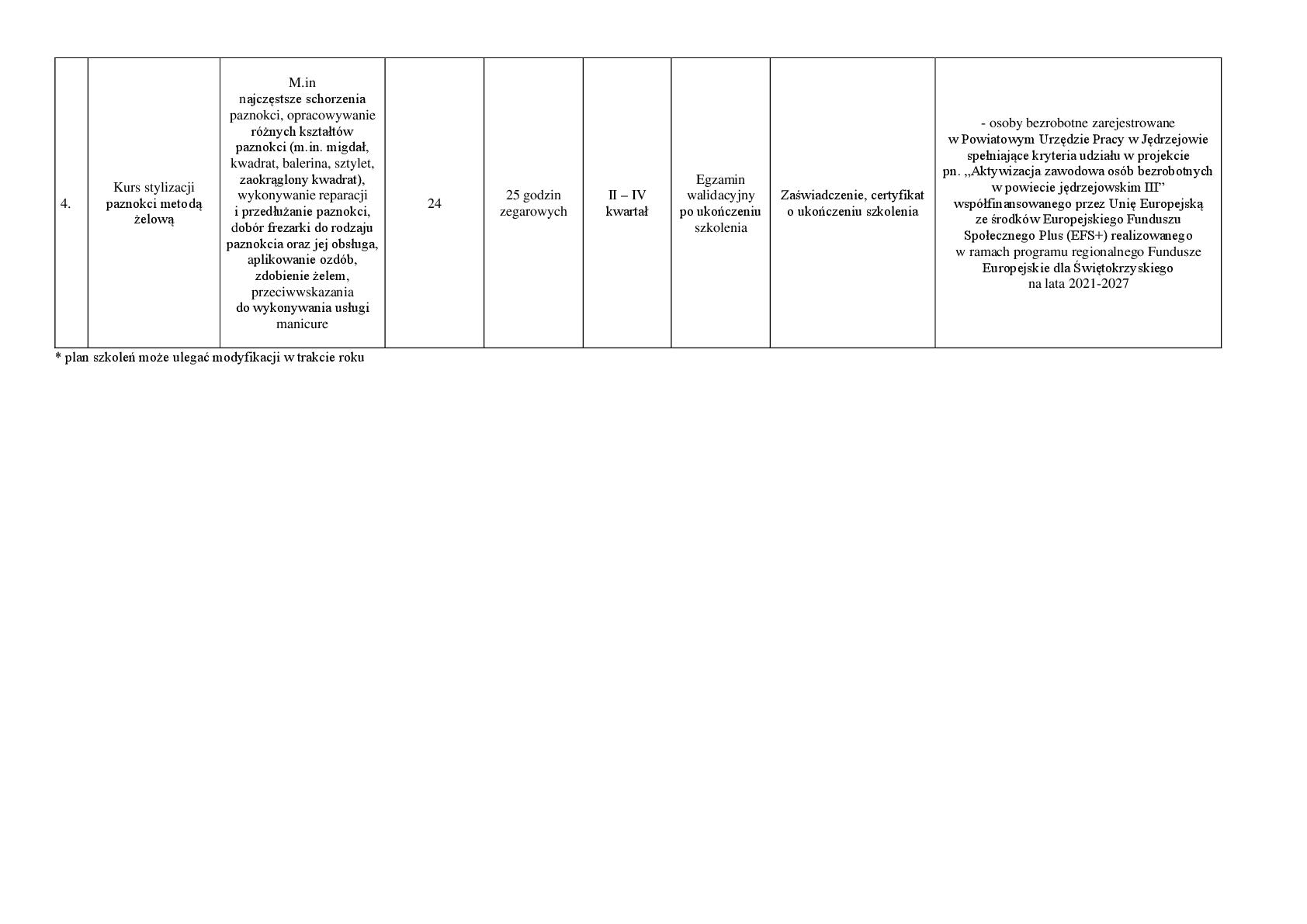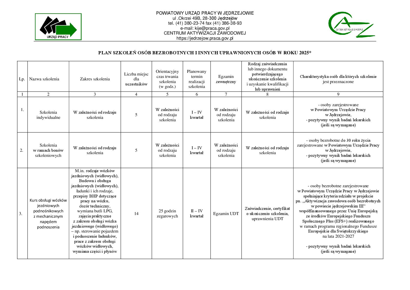 Plan szkoleń osób bezrobotnych i innych uprawnionych osób w roku 2025