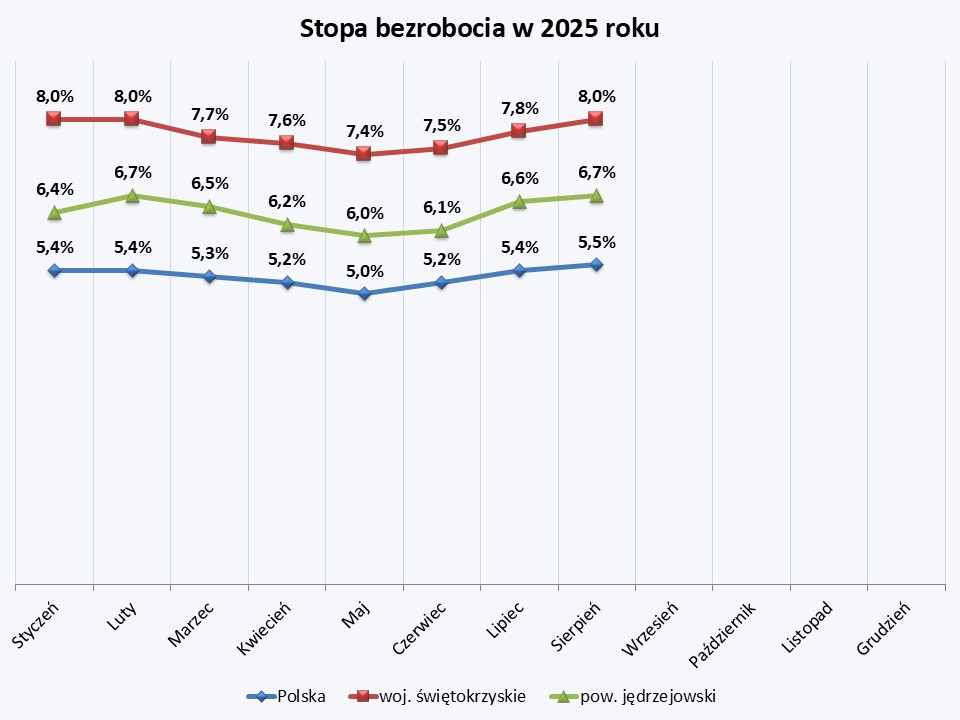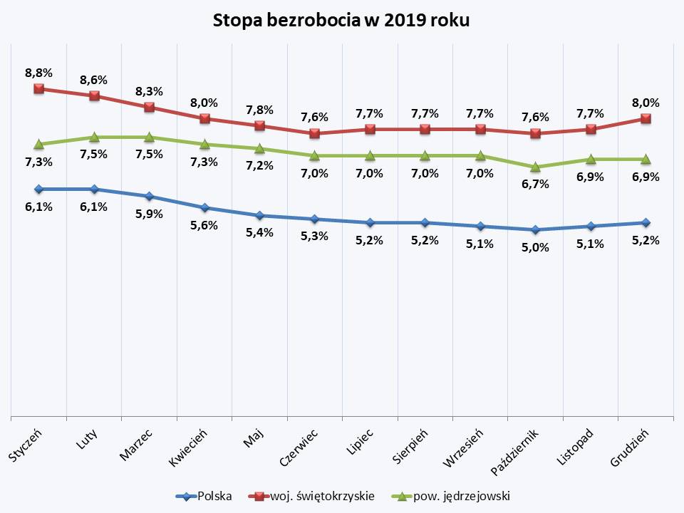 Stopa bezrobocia dla powiatu jędrzejowskiego znajduje się na stronie Głównego Urzędu Statystycznego