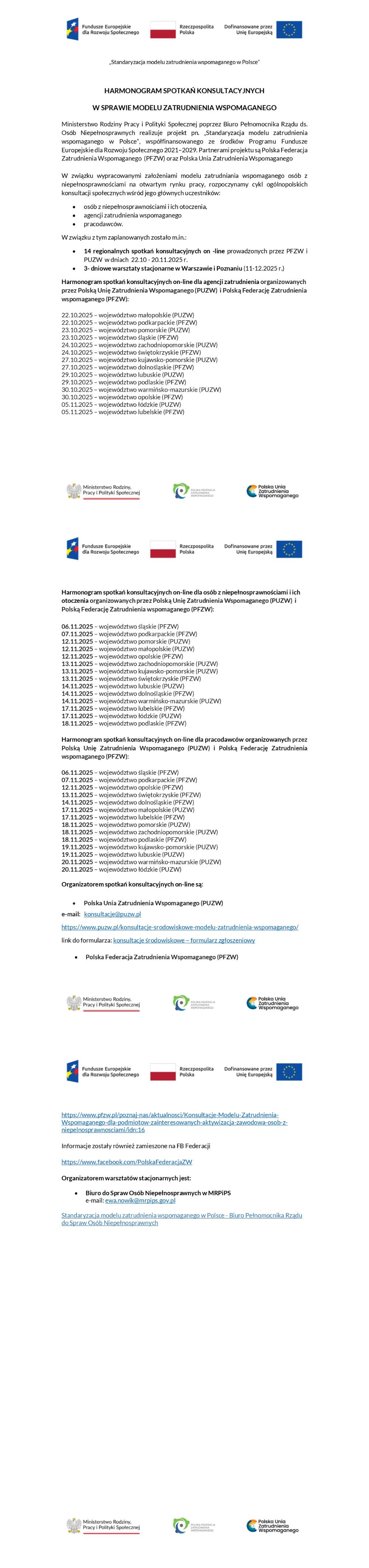 Harmonogram spotkań konsultacyjnych w sprawie modelu zatrudnienia wspomaganego - Powiatowy Urząd Pracy w Krośnie Odrzańskim